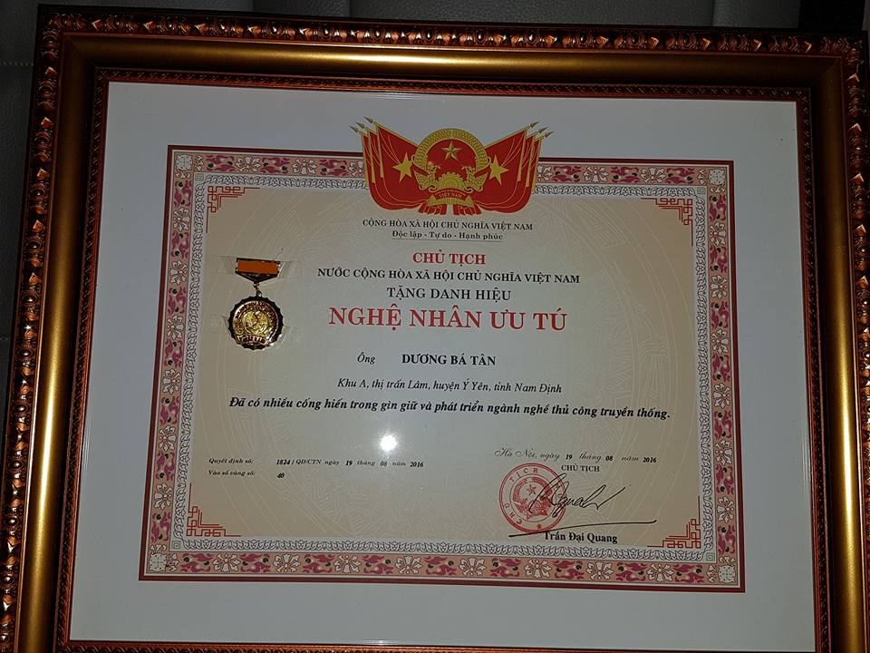 Nghệ nhân Dương Bá Tân vinh dự đón nhận danh hiệu nghệ nhân ưu tú
