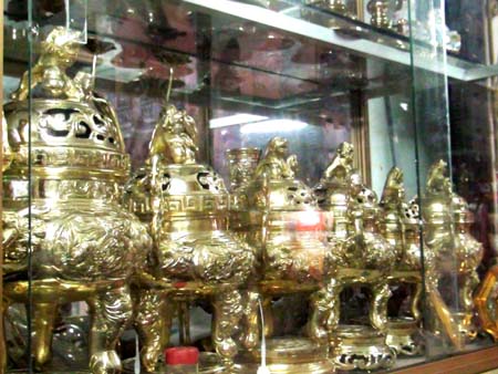Tại cửa hàng giới thiệu và bán sản phẩm của cơ sở đúc đồng mỹ nghệ Tân Tiến, bà chủ hàng vừa đon đả giới thiệu các sản phẩm cho các vị khách từ xa đến, vừa thúc giục công nhân chuyển nhanh hàng lên xe cho một khách quen đến từ tỉnh Hải Dương. Cơ sở này hiện kinh doanh hàng chục loại sản phẩm bằng đồng với mẫu mã và kích thước đa dạng, phong phú trong đó chủ yếu là các loại đồ thờ, đồ trang trí nội thất như mặt trống, quả trống đồng, Tượng Phật và các danh nhân, hình các con thú... Ngoài ra, cơ sở còn nhận đặt hàng đúc chuông, Tượng truyền thần, đồ lưu niệm... Ở cửa hàng bên cạnh, những người công nhân cũng đang tất bật bốc xếp hàng trăm chiếc lư, đỉnh, bát hương, chân nến, bát biểu, mâm bồng, lọ lục bình, tranh chữ, câu đối, đại tự, chữ thọ... lên chiếc xe đang đậu trước cửa để đi đổ hàng cho các khách quen tại các tỉnh Ninh Bình, Thanh Hoá, Nghệ An.
